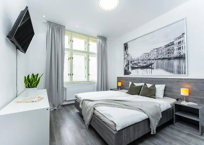 El apartamento de 55 m² está a unos 1 km del Museo del Comunismo y al lado de la Casa Danzante. Los huéspedes pueden llegar fácilmente al Jardín Franciscano, que está a tan solo 8 minutos a pie. El Museo Kafka está a una distancia de 2 km del apartamento.